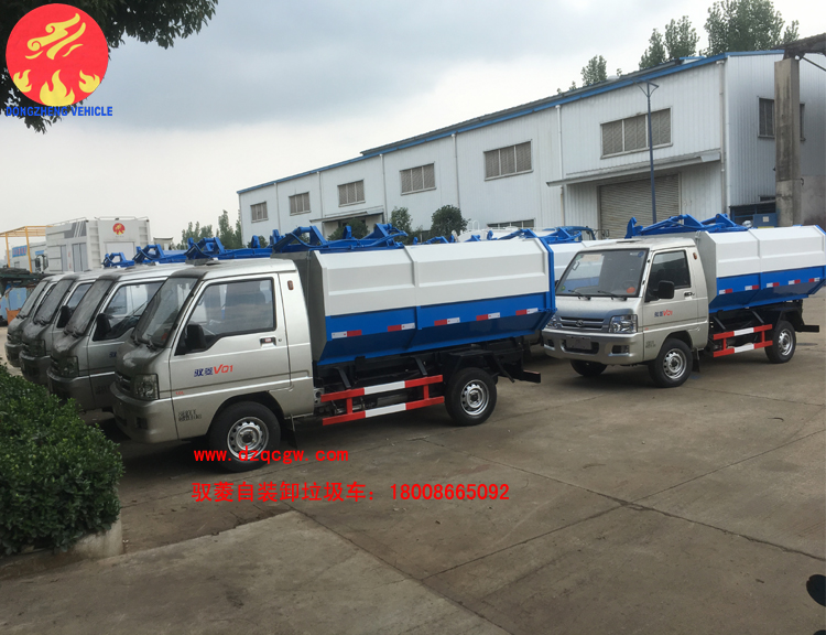 送往廣西的十五臺福田馭菱小型自裝卸式垃圾車已經調試完畢下線待發(fā),該小型自裝卸式垃圾車采用2370mm軸距,柳州五菱國五汽油61馬力發(fā)動機,5檔箱,真空胎,垃圾車容積為3個方。