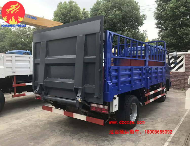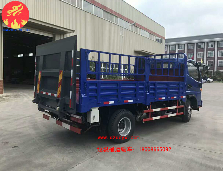 由于人民生活水平不斷提高,為了滿足人們對(duì)垃圾治理的及時(shí)性、徹底性的需求。我公司近期推出一種新的垃圾運(yùn)輸品種即桶裝垃圾運(yùn)輸車。該類型的垃圾運(yùn)輸車為國(guó)五排放,整車上藍(lán)牌,可以市內(nèi)小區(qū)內(nèi)穿梭,車廂為倉(cāng)柵,尾部帶液壓尾板,可一次性處理20-30余桶生活垃圾。大大的提高了垃圾收集的速度。