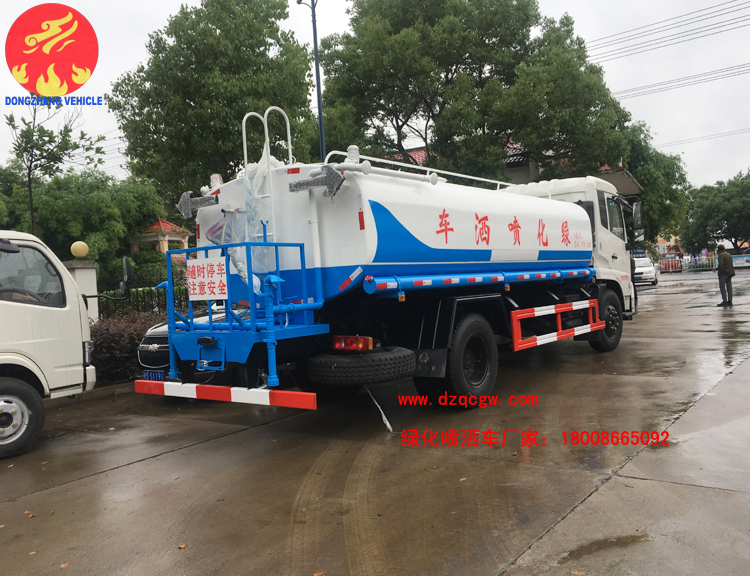 改裝部分:標(biāo)配前沖、后灑、側(cè)噴、工作平臺(tái)、綠化高炮、自流閥、消防接口,輸水管3米2根,8噸以上罐體帶高位花灑2個(gè),億豐泵或金龍泵,控制方式為手動(dòng)。選裝氣動(dòng)閥門控制;高位花灑,大鴨嘴,藥盤,罐體側(cè)面加裝萬向可調(diào)節(jié)噴頭,罐體后部壓塵噴灑裝置,兩個(gè)圓警燈或長警燈,LED箭頭燈,泵可選裝威龍泵或農(nóng)藥噴霧裝置。